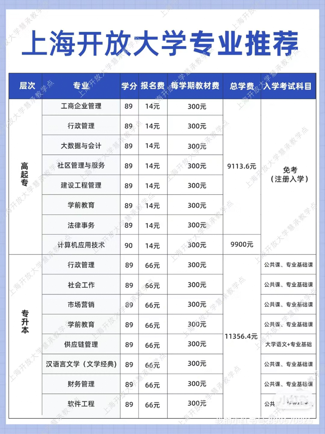 报名费14元。报读上海开放大学开放教育本科(专升本)还需缴纳入学水平测试费26元/门。